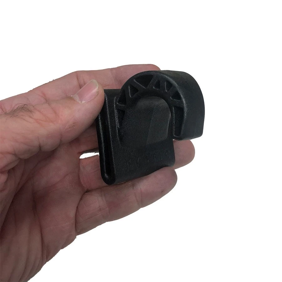 A very compact, easy to use and very strong wing hook. With a 1.75″ slot, it will work best on 1.5′ Webbing but will work on webbing up to 1.75″ in width or smaller. The webbing slot now has tension grooves that exert just a bit on tension on the webbing to help prevent the wing hook from inadvertantly sliding out of position with rider input.